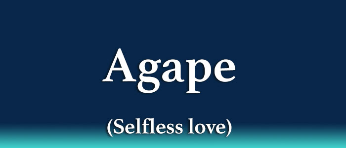 Agape (ἀγάπη) is selfless, sacrificial, unconditional love, the highest of the four types of love in the Bible.