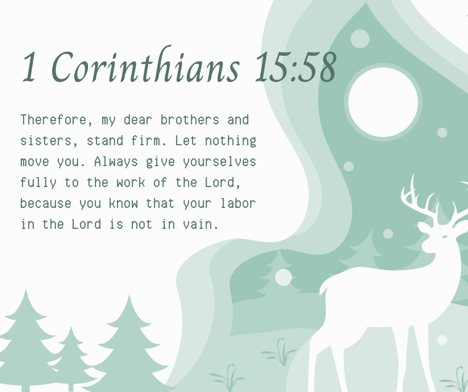“Therefore, my dear brothers and sisters, stand firm. Let nothing move you. Always give yourselves fully to the work of the Lord, because you know that your labor in the Lord is not in vain.” – 1 Corinthians 15:58