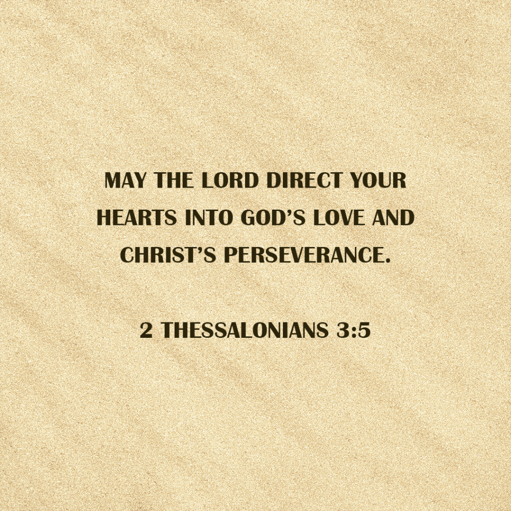 “May the Lord direct your hearts into God’s love and Christ’s perseverance.” – 2 Thessalonians 3:5