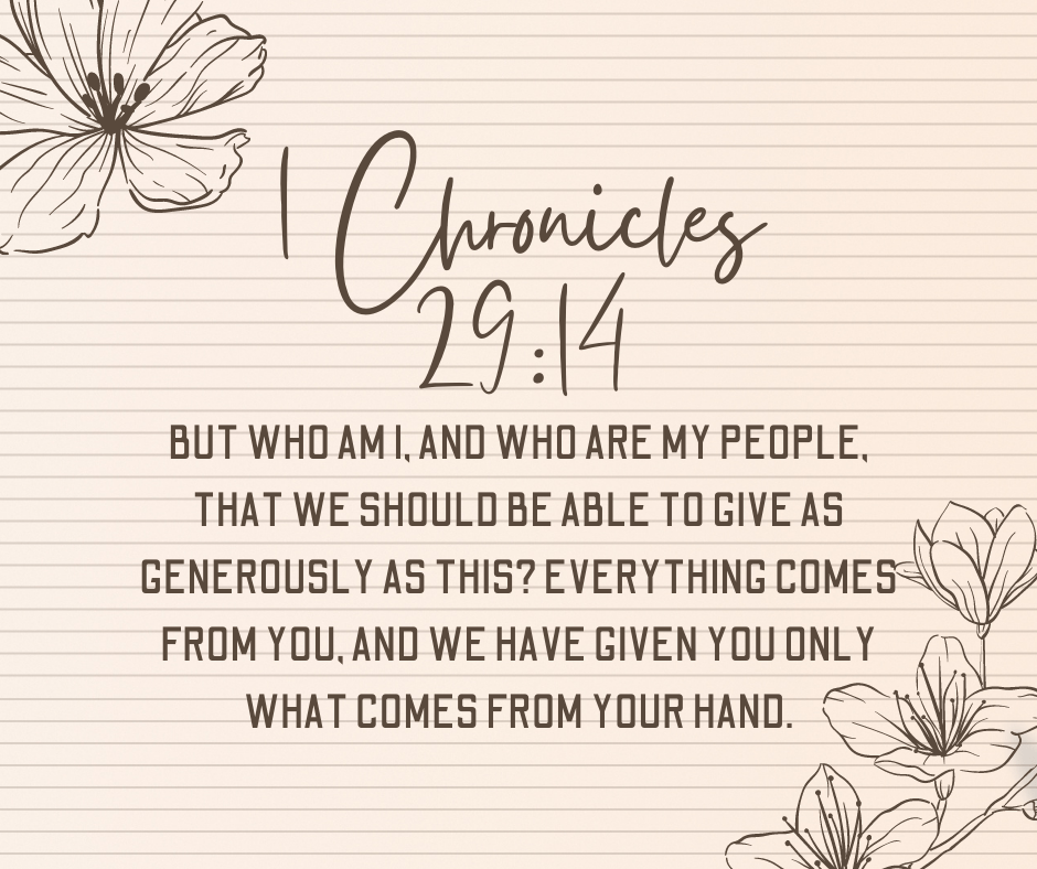 “But who am I, and who are my people, that we should be able to give as generously as this? Everything comes from you, and we have given you only what comes from your hand.” – 1 Chronicles 29:14