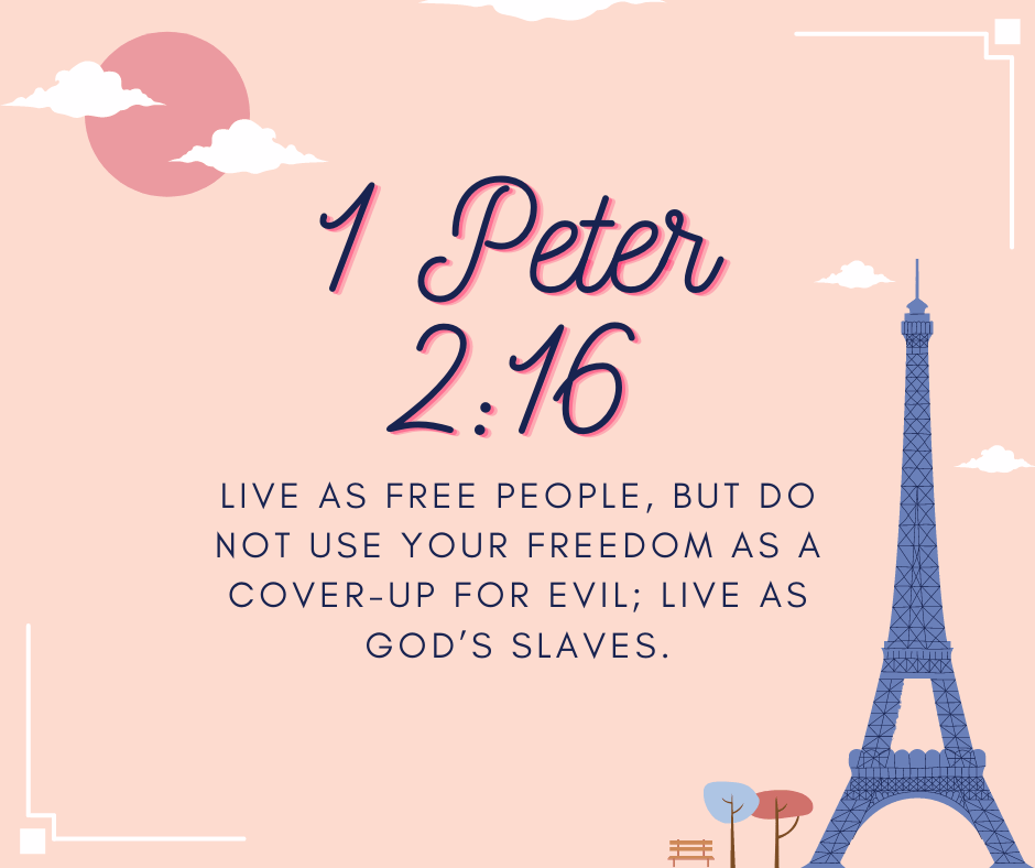 “Live as free people, but do not use your freedom as a cover-up for evil; live as God’s slaves.” – 1 Peter 2:16