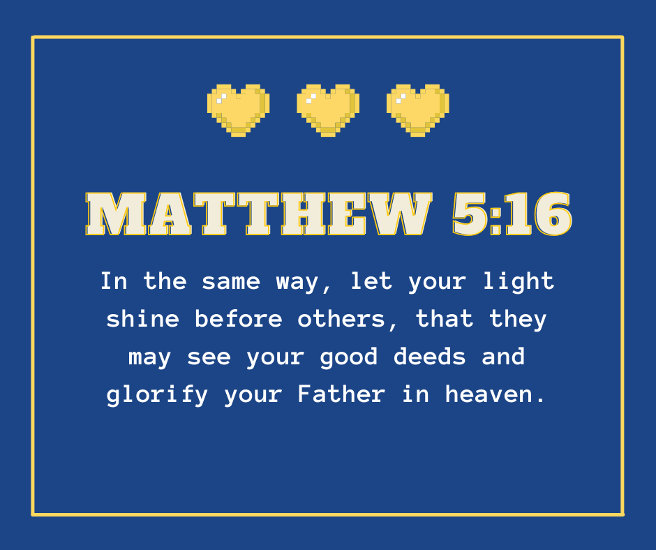 “In the same way, let your light shine before others, that they may see your good deeds and glorify your Father in heaven.” – Matthew 5:16