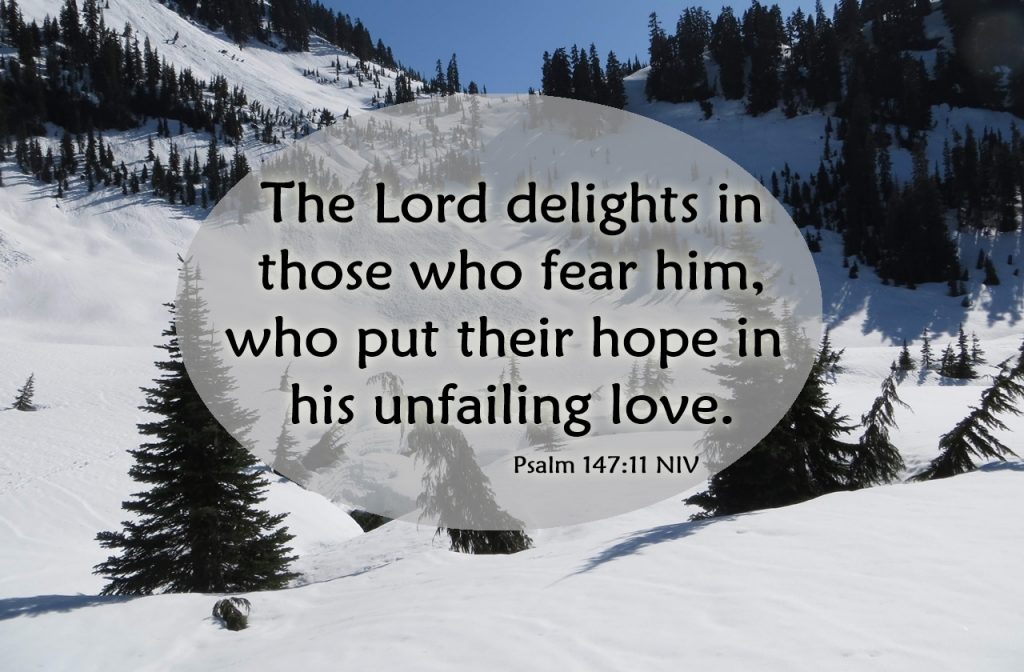 His pleasure is not in the strength of the horse,nor his delight in the legs of the warrior;the LORD delights in those who fear him,who put their hope in his unfailing love.Psalm 147:10-11 NIV