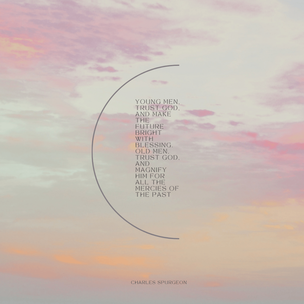 Young men, trust God, and make the future bright with blessing. Old men, trust God, and magnify him for all the mercies of the past – Charles Spurgeon