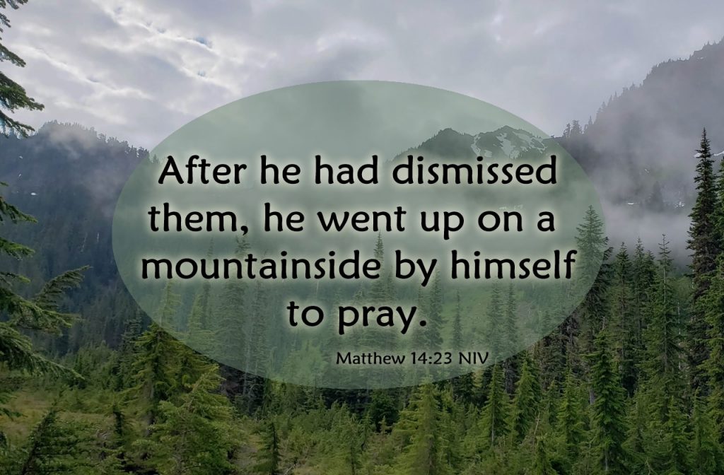 After he had dismissed them, he went up on a mountainside by himself to pray. Later that night, he was there alone …