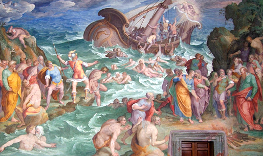 In the main context, people had already fallen into despair, for they had been without food for a few days. The ship containing them was being rocked back and forth. Remember they did not have advanced technology then. The ship made of ordinary material could not overcome the heavy storm in the sea. Nor was any coast guard or helicopter there to save them. Caught in the incredible storm, they feared for their life, as we can imagine. There was so much anxiety and nervousness that these people experienced together.