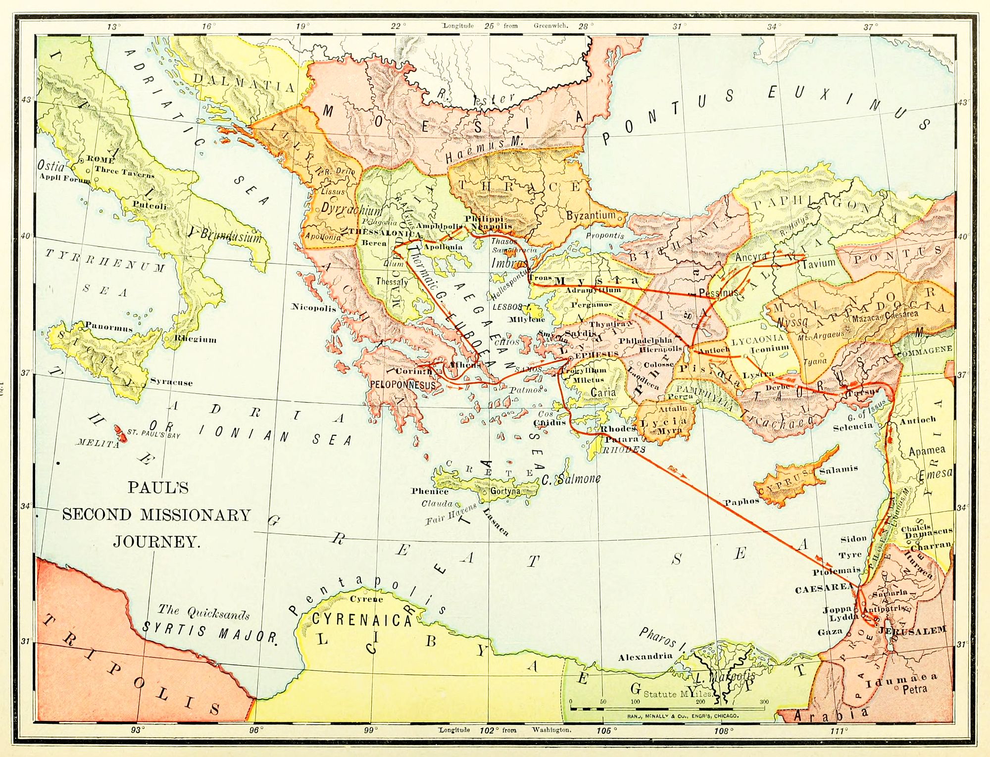In the course of his second missionary journey Paul set sail from Troas, accompanied by Silas (who bears his full name Silvanus in 2 Corinthians 1:19; 1 Thessalonians 1:1; 2 Thessalonians 1:1 ), Timothy and Luke, and on the following day reached Neapolis ( Acts 16:11 ).