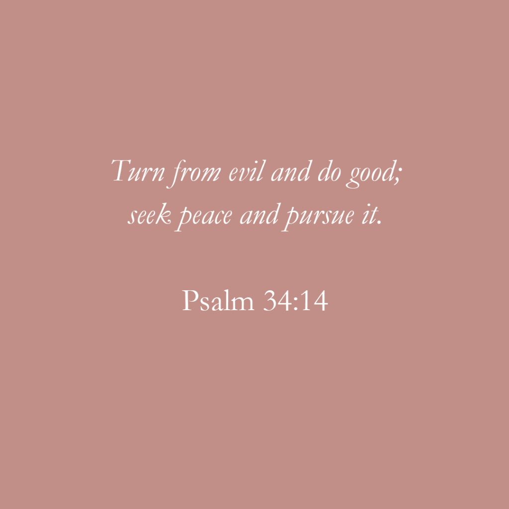 “Turn from evil and do good; seek peace and pursue it.” – Psalm 34:14