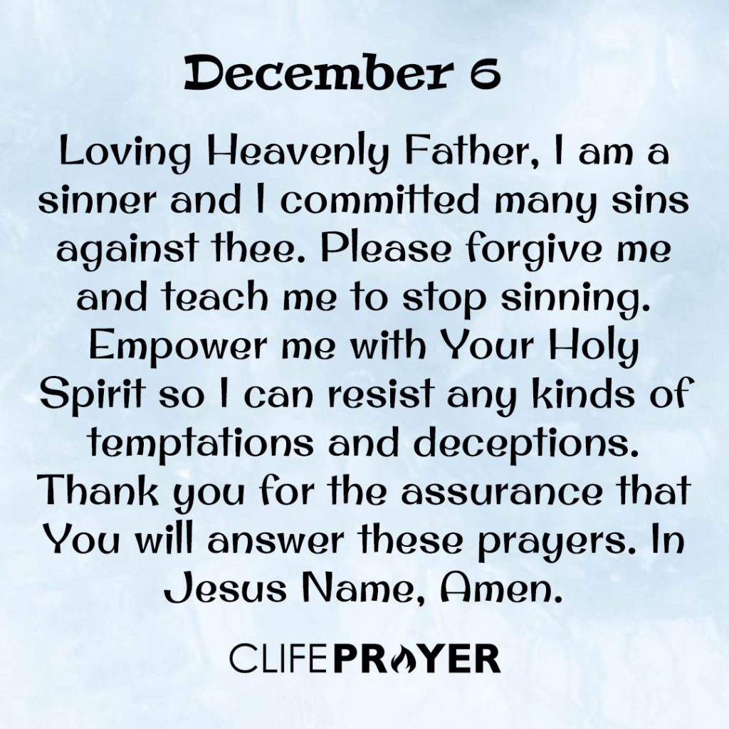Loving Heavenly Father, I am a sinner and I committed many sins against thee. Please forgive me and teach me to stop sinning. Empower me with Your Holy Spirit so I can resist any kinds of temptations and deceptions. Thank you for the assurance that You will answer these prayers. In Jesus Name, Amen.