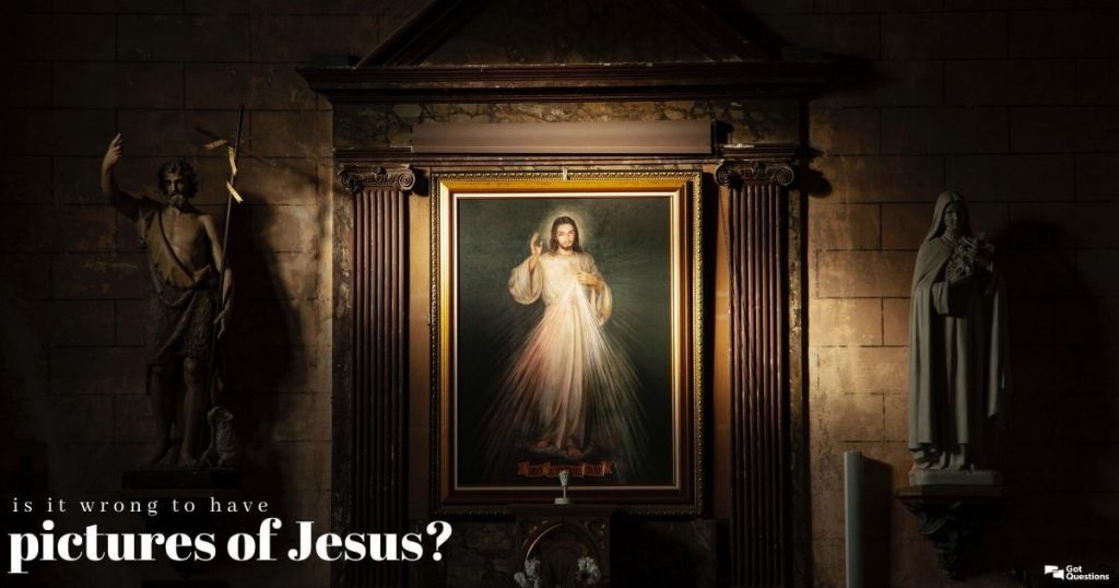 Of course, simply having a picture of Jesus hanging in a home or church does not mean people are practicing idolatry. It is possible that a portrait of Jesus or a crucifix can become an object of worship, in which case the worshiper is at fault. But there is nothing in the New Testament that would specifically forbid a Christian from having a picture of Jesus. Such an image could well be a reminder to pray, to refocus on the Lord, or to follow in Christ’s footsteps. But believers should know that the Lord cannot be reduced to a two-dimensional image and that prayer or adoration is not to be offered to a picture. A picture will never be a complete image of God or accurately display His glory, and should never be a substitute for how we view God or deepen our knowledge of Him. And, of course, even the most beautiful representation of Jesus Christ is nothing more than one artist’s conception of what the Lord looked like.
