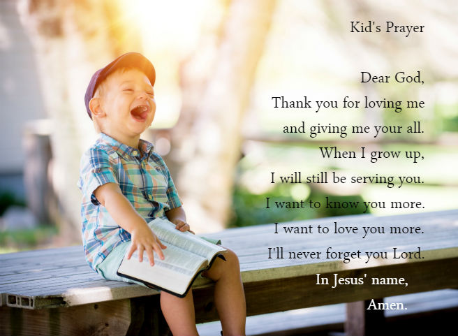 Dear God,Thank you for loving meand giving me your all.When I grow up,I will still be serving you.I want to know you more.I want to love you more.I’ll never forget you Lord.In Jesus’ name,