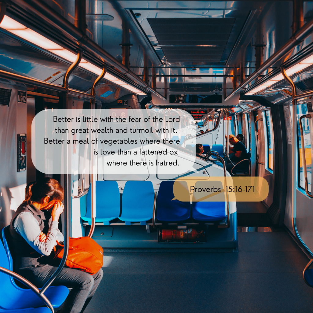 Proverbs 15:16-17“Better is little with the fear of the Lord than great wealth and turmoil with it.Better a meal of vegetables where there is lovethan a fattened ox where there is hatred.”