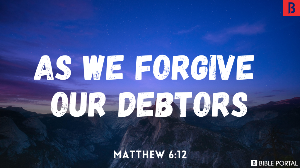 Matthew 6:12,14-15 Forgive us our debts as we forgive our debtors … For if you forgive men their trespasses, your heavenly Father will forgive you too; but, if you do not forgive men their trespasses, neither will your Father forgive your trespasses.