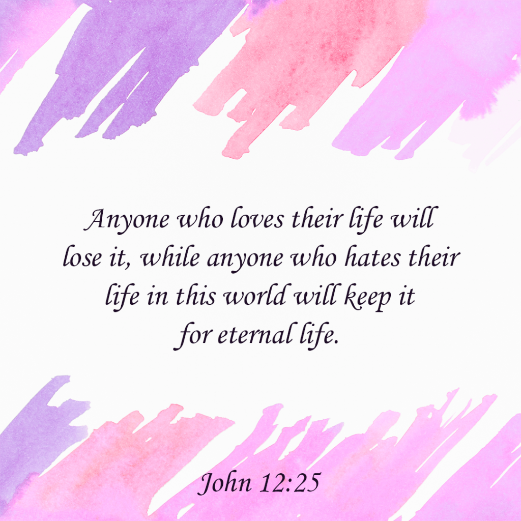 “Anyone who loves their life will lose it, while anyone who hates their life in this world will keep it for eternal life.” – John 12:25