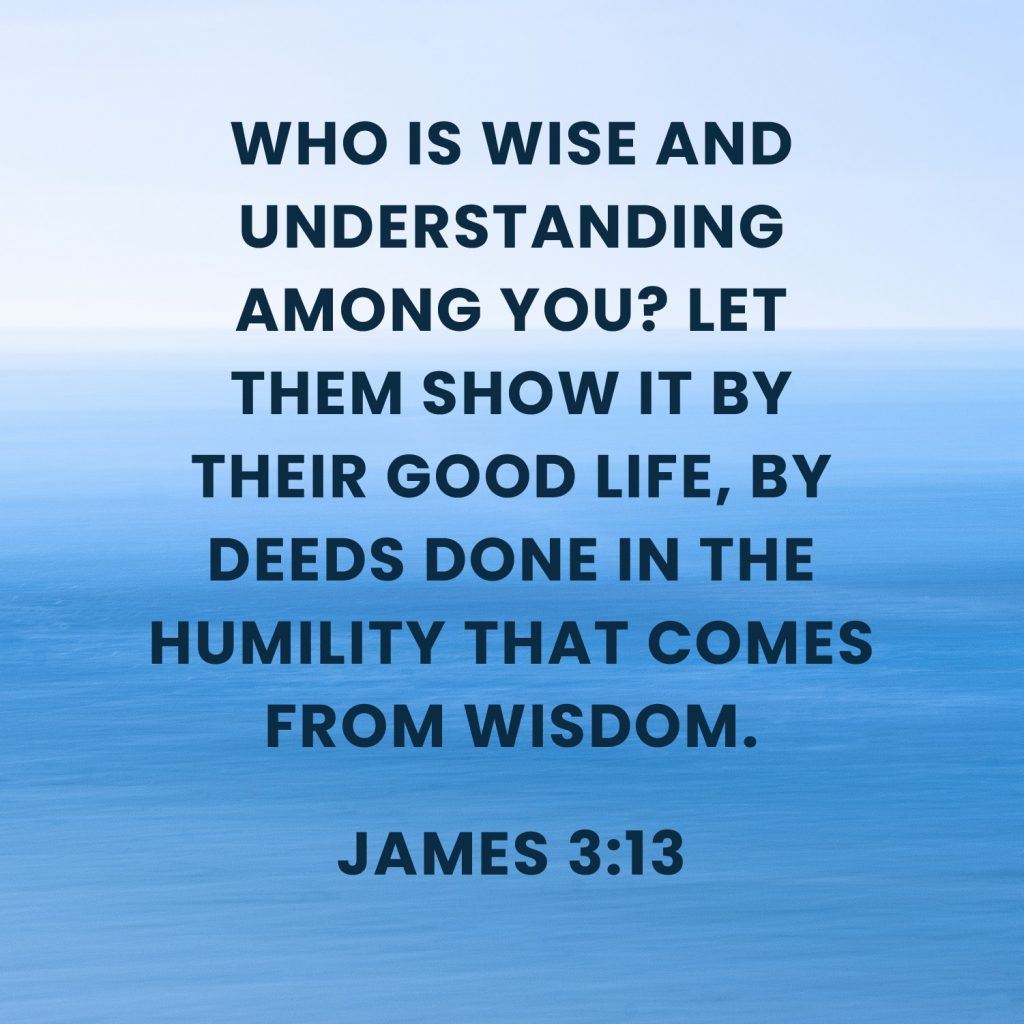 “Who is wise and understanding among you? Let them show it by their good life, by deeds done in the humility that comes from wisdom.” – James 3:13