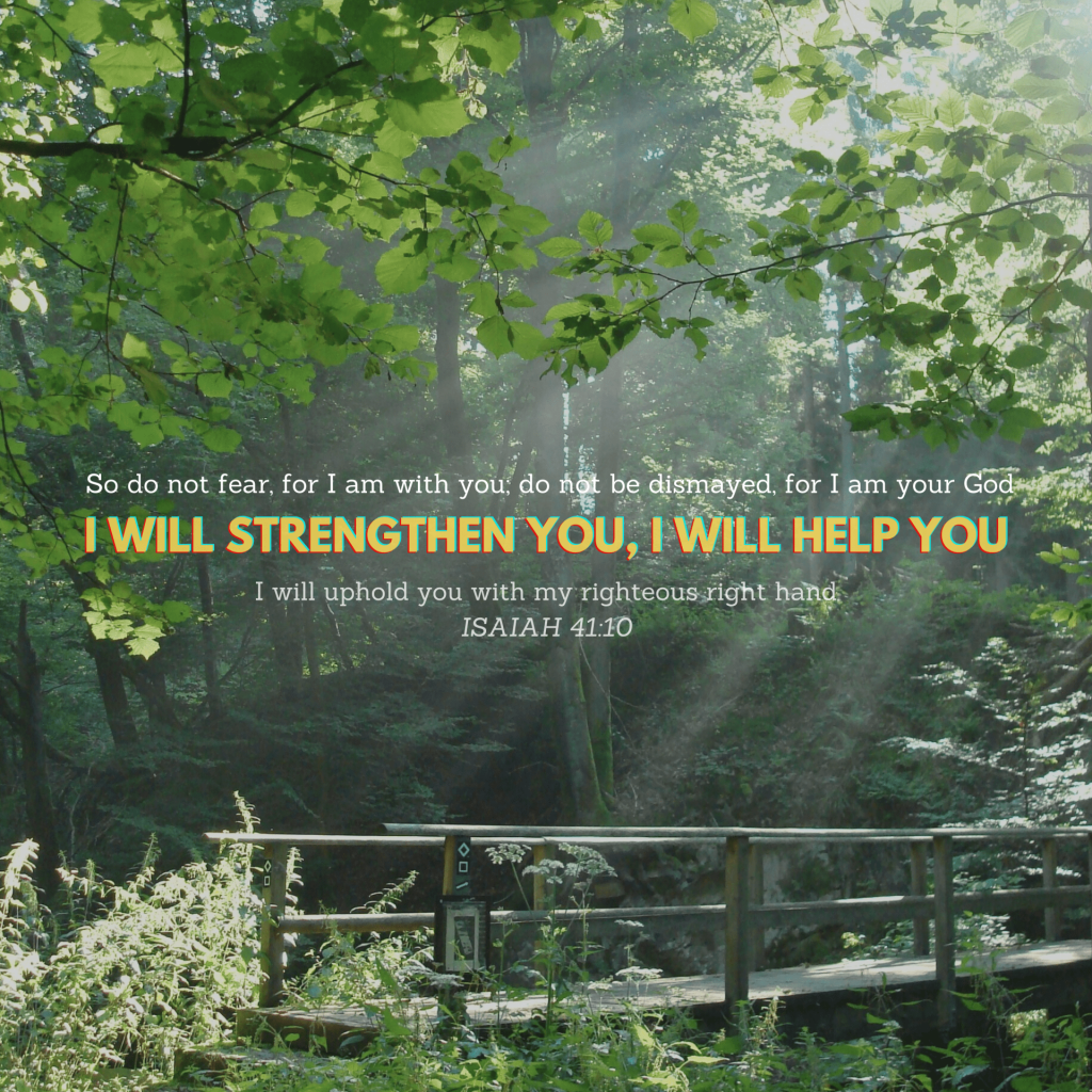 So do not fear, for I am with you; do not be dismayed, for I am your God. I will strengthen you and help you; I will uphold you with my righteous right hand. Isaiah 41:10