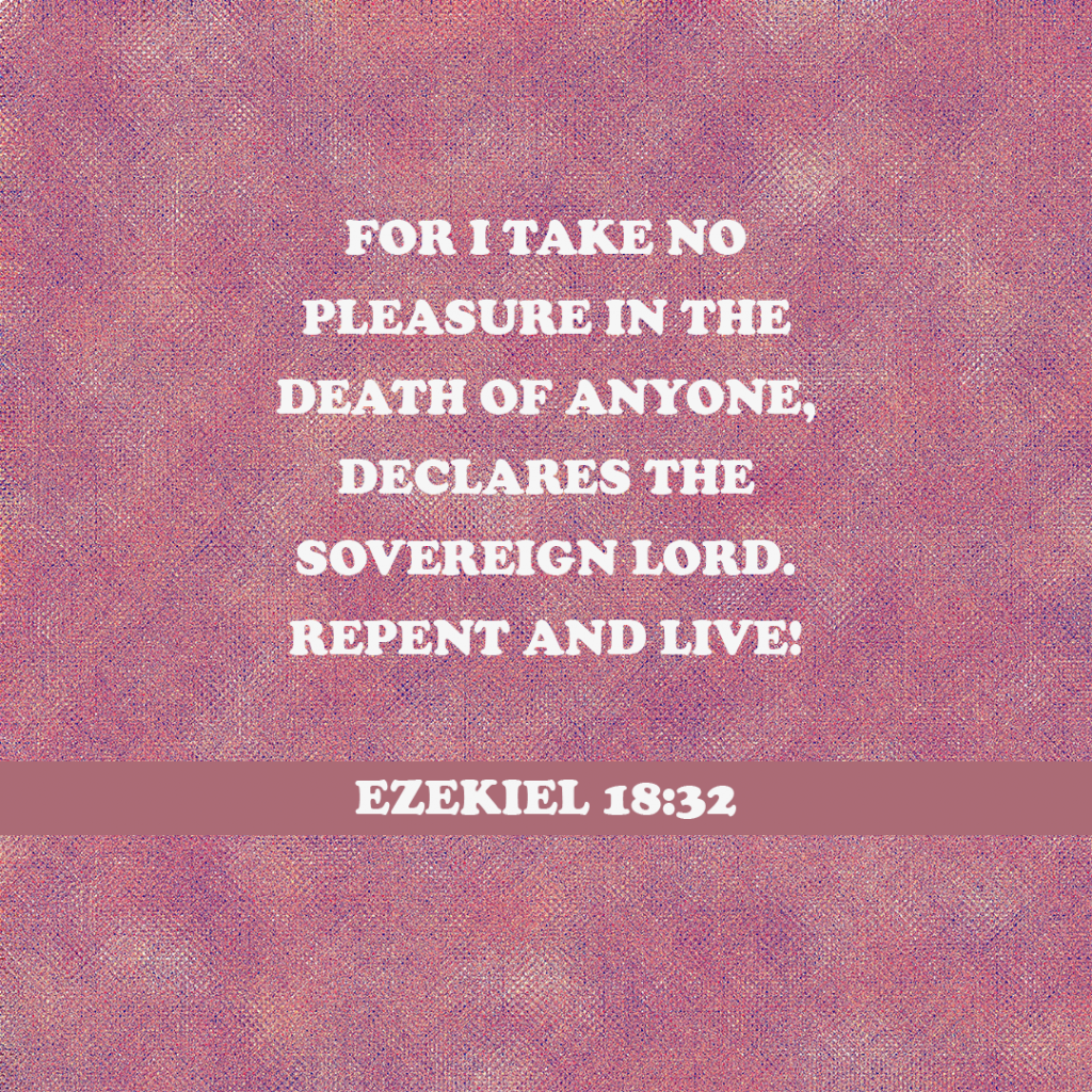 “For I take no pleasure in the death of anyone, declares the Sovereign Lord. Repent and live!” – Ezekiel 18:32