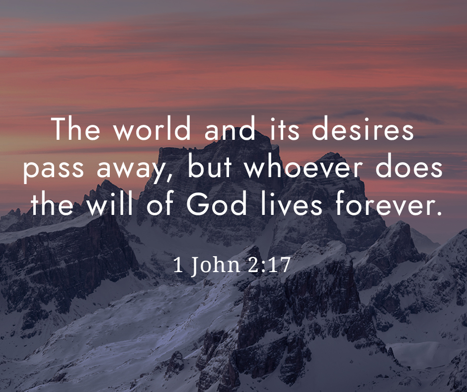 “The world and its desires pass away, but whoever does the will of God lives forever.” – 1 John 2:17