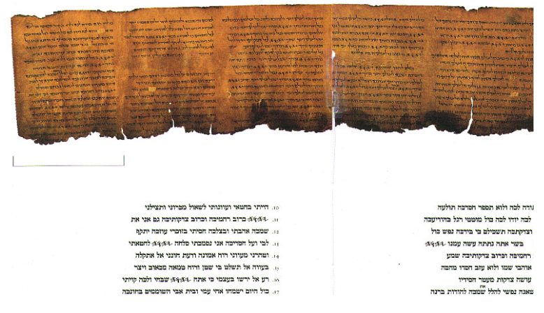 The Dead Sea Scrolls comprise a vast collection of Jewish documents written in Hebrew, Aramaic, and Greek. They include manuscripts or fragments of every book in the Hebrew Bible except the book of Esther, all of them created nearly one thousand years earlier than any previously known Old Testament manuscript. The scrolls also contain the earliest known biblical commentary, on the book of Habakkuk, and many other writings.