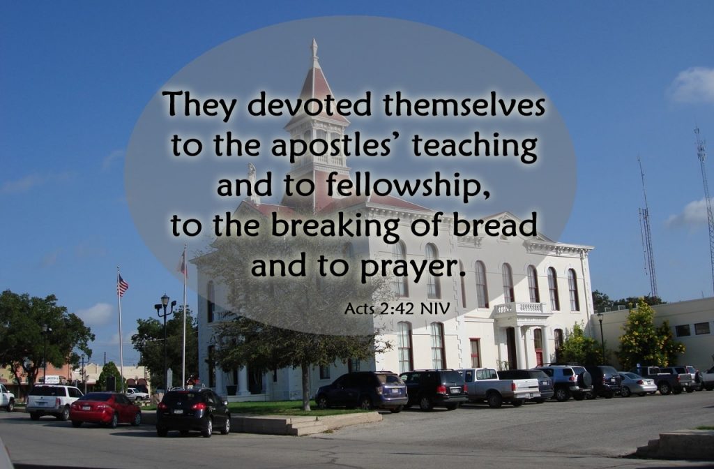 In this verse, it seems to me that the second and third elements are related to relationships between members, while the first and fourth are dealing with their relationship with God. They were devoted to prayer. And not just to open and close their worship services and for meal blessings. They gave themselves over to communicating with the Father. I have no doubt their prayer included praise and adoration of the Father, as well as intercession for needs. But it is also clear that their prayer included requests for boldness (Acts 4:23-31). And it probably included requests for a better understanding of God’s purpose and how he equips them for more effective service (Eph. 1:15-23).