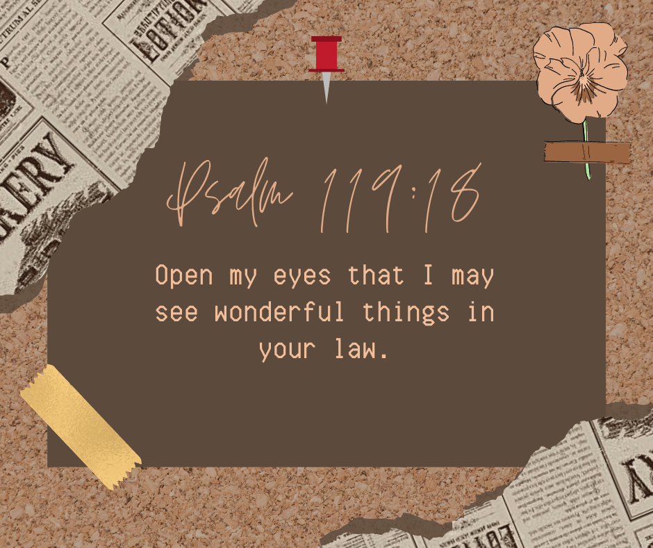 “Open my eyes that I may see wonderful things in your law.” – Psalm 119:18