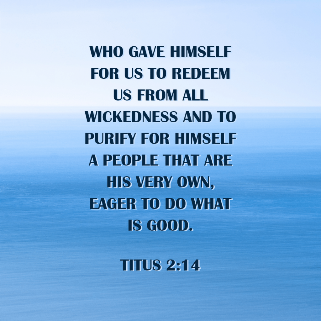 “who gave himself for us to redeem us from all wickedness and to purify for himself a people that are his very own, eager to do what is good.” – Titus 2:14