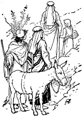But Abraham undertook at once to obey. God’s command. He took two young men with him and an ass laden with wood for the fire; and he went toward the mountain in the north, Isaac, his son, walking by his side. For two days they walked, sleeping under the trees at night in the open country. And on the third day Abraham saw the mountain far away. And as they drew near to the mountain Abraham said to the young men: