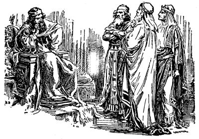 After Jesus was taken before the high-priest where he was ridiculed and the people spat upon him, he was taken before the Roman Governor, Pontius Pilate, who ruled over Judea. He heard their complaints, but did not find any cause for putting him to death. But at last he yielded to their demands, although he declared Jesus was innocent of all wrong.