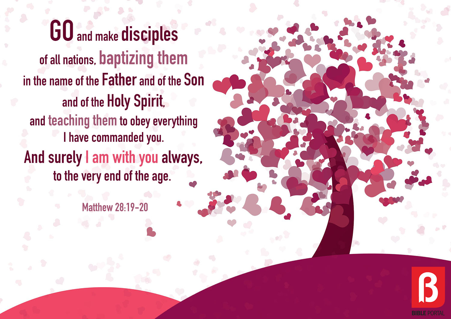 Therefore go and make disciples of all nations, baptizing them in the name of the Father and of the Son and of the Holy Spirit, and teaching them to obey everything I have commanded you. And surely I am with you always, to the very end of the age. Matthew 28:19-20
