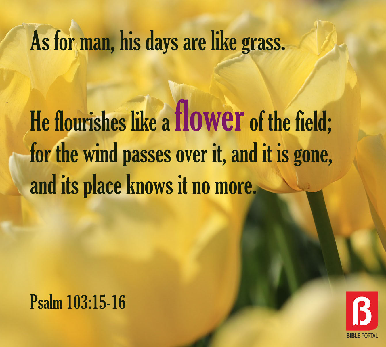 As for man, his days are like grass. He flourishes like a flower of the field; for the wind passes over it, and it is gone, and its place knows it no more. Psalm 103:15-16