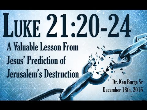 Pastor Ken Burge Sr sermon entitled "A Valuable Lesson From Jesus’ Prediction of Jerusalem’s Destruction - Luke 21:20-24" This is the 132nd sermon in the Book of Luke Series.
