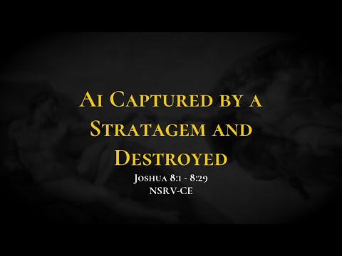 Then the Lord said to Joshua, “Do not fear or be dismayed; take all the fighting men with you, and go up now to Ai. See, I have handed over to you the king of Ai with his people, his city, and his land. You shall do to Ai and its king as you did to Jericho and its king; only its spoil and its livestock you may take as booty for yourselves. Set an ambush against the city, behind it.” So Joshua and all the fighting men set out to go up against Ai. Joshua chose thirty thousand warriors and sent them out by night with the command, “You shall lie in ambush against the city, behind it; do not go very far from the city, but all of you stay alert. I and all the people who are with me will approach the city. When they come out against us, as before, we shall flee from them. They will come out after us until we have drawn them away from the city; for they will say, ‘They are fleeing from us, as before.’ While we flee from them, you shall rise up from the ambush and seize the city; for the Lord your God will give it into your hand. And when you have taken the city, you shall set the city on fire, doing as the Lord has ordered; see, I have commanded you.” So Joshua sent them out; and they went to the place of ambush, and lay between Bethel and Ai, to the west of Ai; but Joshua spent that night in the camp. In the morning Joshua rose early and mustered the people, and went up, with the elders of Israel, before the people to Ai. All the fighting men who were with him went up, and drew near before the city, and camped on the north side of Ai, with a ravine between them and Ai. Taking about five thousand men, he set them in ambush between Bethel and Ai, to the west of the city. So they stationed the forces, the main encampment that was north of the city and its rear guard west of the city. But Joshua spent that night in the valley. When the king of Ai saw this, he and all his people, the inhabitants of the city, hurried out early in the morning to the meeting place facing the Arabah to meet Israel in battle; but he did not know that there was an ambush against him behind the city. And Joshua and all Israel made a pretense of being beaten before them, and fled in the direction of the wilderness. So all the people who were in the city were called together to pursue them, and as they pursued Joshua they were drawn away from the city. There was not a man left in Ai or Bethel who did not go out after Israel; they left the city open, and pursued Israel. Then the Lord said to Joshua, “Stretch out the sword that is in your hand toward Ai; for I will give it into your hand.” And Joshua stretched out the sword that was in his hand toward the city. As soon as he stretched out his hand, the troops in ambush rose quickly out of their place and rushed forward. They entered the city, took it, and at once set the city on fire. So when the men of Ai looked back, the smoke of the city was rising to the sky. They had no power to flee this way or that, for the people who fled to the wilderness turned back against the pursuers. When Joshua and all Israel saw that the ambush had taken the city and that the smoke of the city was rising, then they turned back and struck down the men of Ai. And the others came out from the city against them; so they were surrounded by Israelites, some on one side, and some on the other; and Israel struck them down until no one was left who survived or escaped. But the king of Ai was taken alive and brought to Joshua. When Israel had finished slaughtering all the inhabitants of Ai in the open wilderness where they pursued them, and when all of them to the very last had fallen by the edge of the sword, all Israel returned to Ai, and attacked it with the edge of the sword. The total of those who fell that day, both men and women, was twelve thousand-all the people of Ai. For Joshua did not draw back his hand, with which he stretched out the sword, until he had utterly destroyed all the inhabitants of Ai. Only the livestock and the spoil of that city Israel took as their booty, according to the word of the Lord that he had issued to Joshua. So Joshua burned Ai, and made it forever a heap of ruins, as it is to this day. And he hanged the king of Ai on a tree until evening; and at sunset Joshua commanded, and they took his body down from the tree, threw it down at the entrance of the gate of the city, and raised over it a great heap of stones, which stands there to this day.