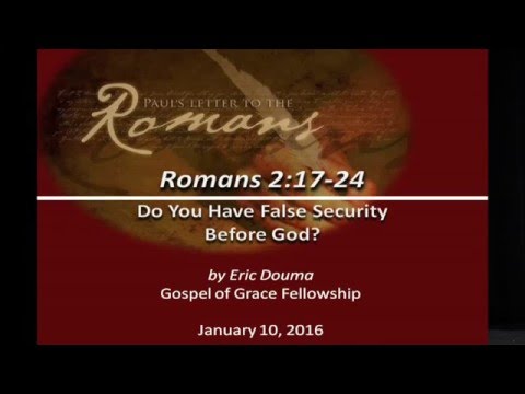 In this sermon we examine how the Jews had a false sense of security before God. We learn in Romans 2:17-24 that this false sense of security stemmed from a false belief that they were exempt from God’s wrath merely because they were recipients of the Law. The apostle Paul will once again demonstrate that it is not the recipient of the Law who is justified before God but the “doer” of the Law. Since no person can be a perfect “doer” of the Law, justification cannot be attained through the Law of Moses. Come and hear why faith alone in Jesus Christ alone is the only way a person can have true security before God.
