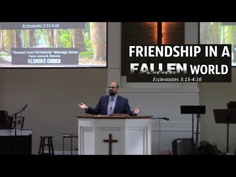 Part 5 of the Ecclesiastes, "Ground Level Christianity" message series, "Friendship in a Fallen World" from Ecclesiastes 3:15-4:16. This message was preached by Pastor Joshua M. Wallnofer 7/28/19.