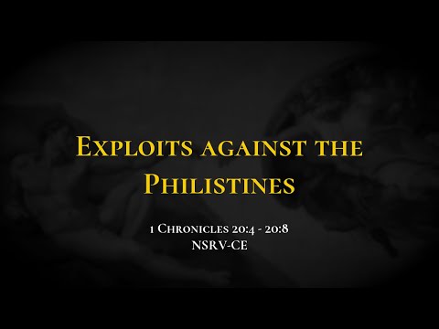 After this, war broke out with the Philistines at Gezer; then Sibbecai the Hushathite killed Sippai, who was one of the descendants of the giants; and the Philistines were subdued. Again there was war with the Philistines; and Elhanan son of Jair killed Lahmi the brother of Goliath the Gittite, the shaft of whose spear was like a weaver's beam. Again there was war at Gath, where there was a man of great size, who had six fingers on each hand, and six toes on each foot, twenty-four in number; he also was descended from the giants. When he taunted Israel, Jonathan son of Shimea, David's brother, killed him. These were descended from the giants in Gath; they fell by the hand of David and his servants.