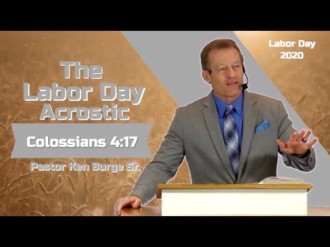 Pastor Ken Burge Sr is the Senior Pastor at Colmar Manor Bible Church which is located on the DC/Maryland border. This sermon is entitled "Colossians 4:17 - Labor Day Acrostic." This sermon was preached on September 6th in the year 2020.