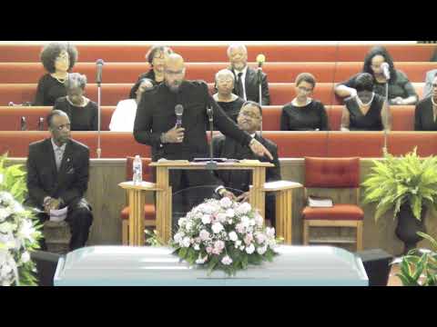Pastor E delivers the message for the homegoing celebration for church mother Sis. Annie King.