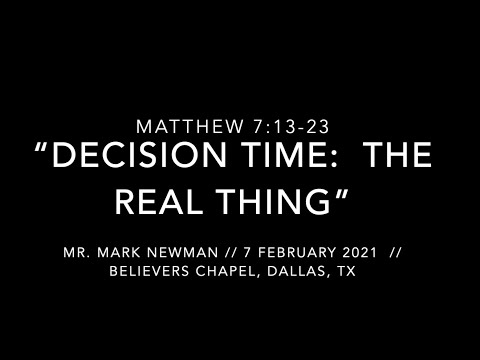 Mr. Mark Newman continues in a series of studies in the Sermon on the Mount with Matthew 7:13-23 “Decision Time: The Real Thing"