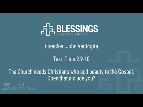 "The Church needs Christians who add beauty to the Gospel. Does that include you?" - This sermon on Titus 2:9-10 was preached by Pastor John VanPopta at Blessings Christian Church in Hamilton Ontario.