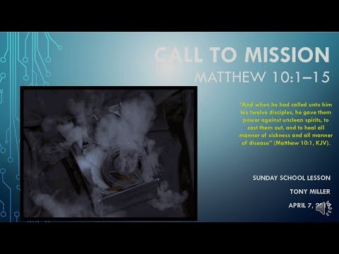 MATTHEW 10: 1-15, JESUS CALLS THE 12 TO BECOME THE MISSIONARIES PROCLAIMING THE KINGDOM OF GO/HEAVEN IS AT HAND. JESUS GIVES THE AUTHORITY TO THEM TO CAST OUT DEMONS AND HEAL THE SICK AND INSTRUCTIONS ON THEIR MISSIONARY WORK. THESE LESSONS ARE AVAILABLE ON POWER-POINT UPON INDIVIDUAL REQUEST @ tonymillertmiller@gmail.com... FOR THOSE WISHING TO DONATE SEND TO: https://www.paypal.me/AnthonyMiller72 ... FUNDS WILL BE USED FOR GROWTH OF VIEWERSHIP.