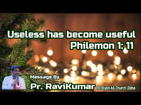 Hindi Christian Message: "Useless has become useful " Philemon 1: 11 - by Pr. Ravi Kumar shared in Friday service (25-12-2020) at El Elyon AG Church, Doha - Qatar.